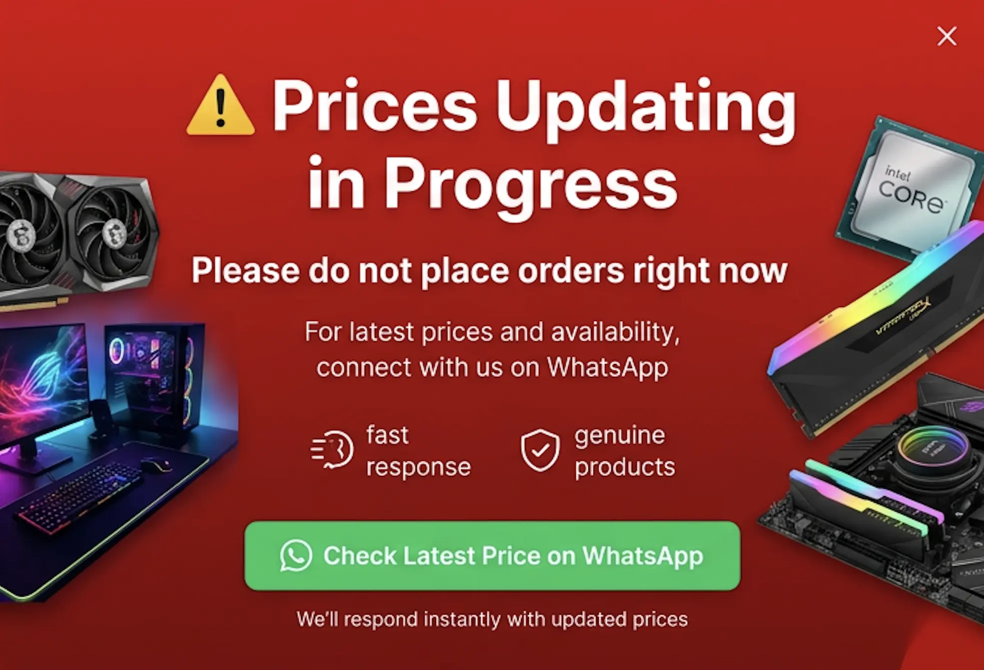 Welcome to our custom PC builder! With this feature, you can create your ultimate gaming rig tailored to your preferences and budget.