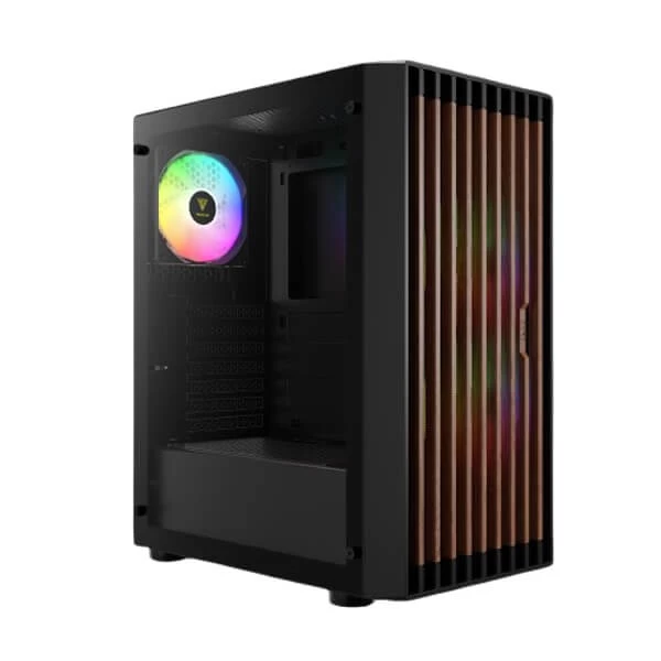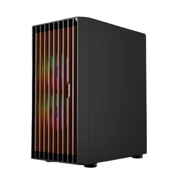 The AURA GC4 ARGB is an affordable mid-tower case with an elegant and efficient layout. The front panel is crafted with real walnut wood with perforated mesh for a premium aesthetic with optimal airflow, integrated with 3 built-in ARGB fans, and a panoramic tempered glass panel to show off your system.